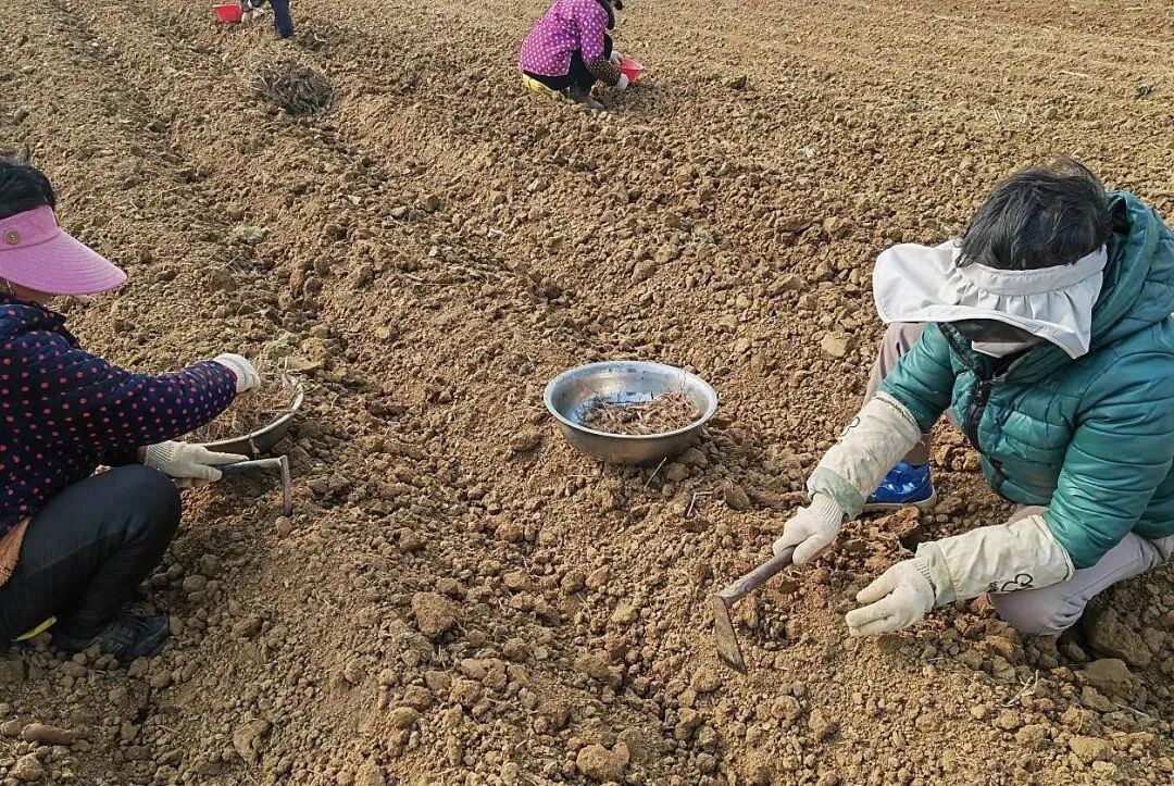 日前,在孝昌县卫店镇绿化村的白术种植基地里,30余名村民正抢抓晴好天气种植白术。村民在技术人员指导下,翻耕、做畦、栽种、施肥,一派繁忙景象。