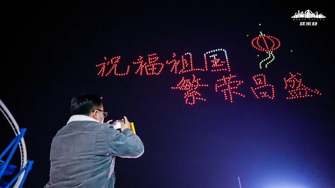 除了花灯,武汉欢乐谷还将在正月十五晚上8点,上演酷炫的无人机表演,近千台无人机在天上用灯光组成祝福和图案,点亮欢乐谷夜空。
