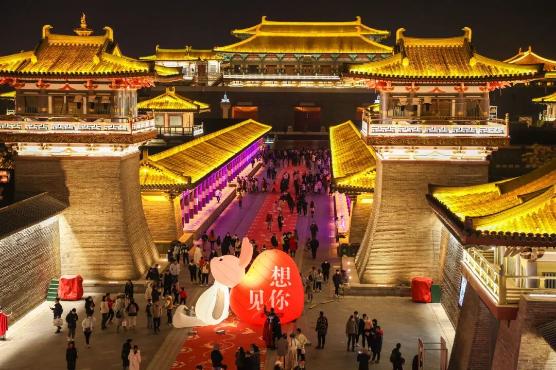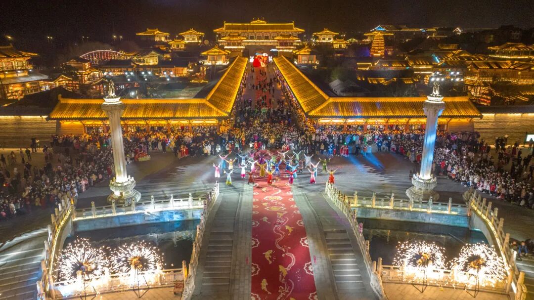 大唐盛世歌舞升平、唐城庙会年味足!入夜的唐城,一眼梦回大唐。漫步于灯影婆娑的古建筑之中,繁复的花灯依次排列在路边、舞者在灯影中尽情起舞,舞姿曼妙,大唐盛世风情尽在其中。