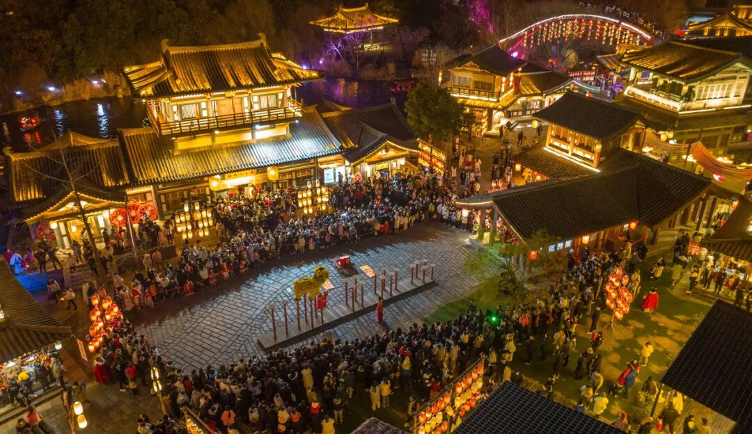 华灯初上,游人如织。春节期间,湖北各地进入不夜城模式。花灯彩灯、灯光秀、烟花秀、篝火、打铁花……流光溢彩的夜晚,游人穿梭于灯火阑珊处,喜悦的笑脸溢满了整个新年。