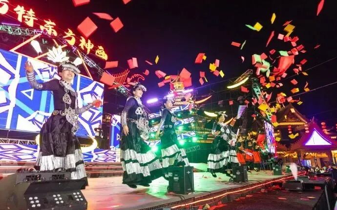 在歌声舞蹈之中,烟花盛放之下,逛一次新春热闹的庙会,看一次节日限定的花车巡游,精彩纷呈的盛宴,就在荆州方特夜幕之下,盛大上演,让人沉浸式感受彝族年味,过一次独特又热闹的新春佳节。