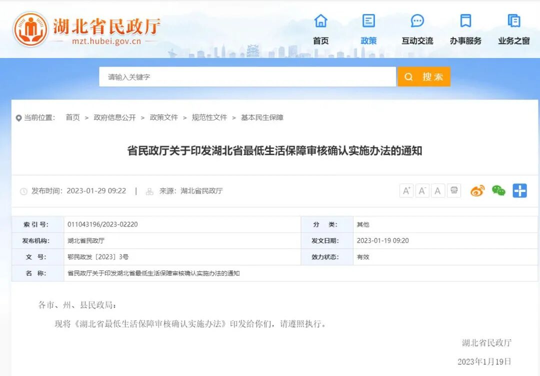 近日,省民政厅印发《湖北省最低生活保障审核确认实施办法》(以下简称《实施办法》),规范我省低保审核确认工作。《实施办法》自2023年2月1日起施行,有效期5年。
