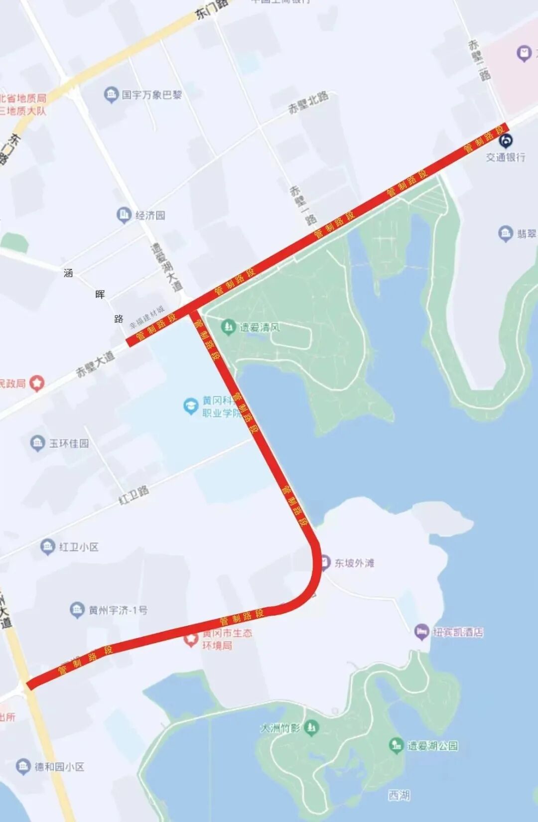 2023年2月5日(正月十五日),遗爱湖公园苏公堤将举行大型焰火表演活动。为保障活动安全有序开展,依据相关法律规定,公安交管部门将于2023年2月5日19:00至21:30,对①赤壁大道与赤壁二路路口至赤壁大道与涵晖路路口、②西湖一路与黄州大道路口至遗爱湖大道与赤壁大道路口实行道路交通管制。
