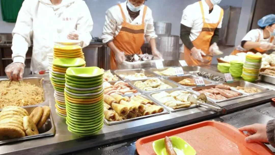 食堂里的早餐档口就已经排起了长龙