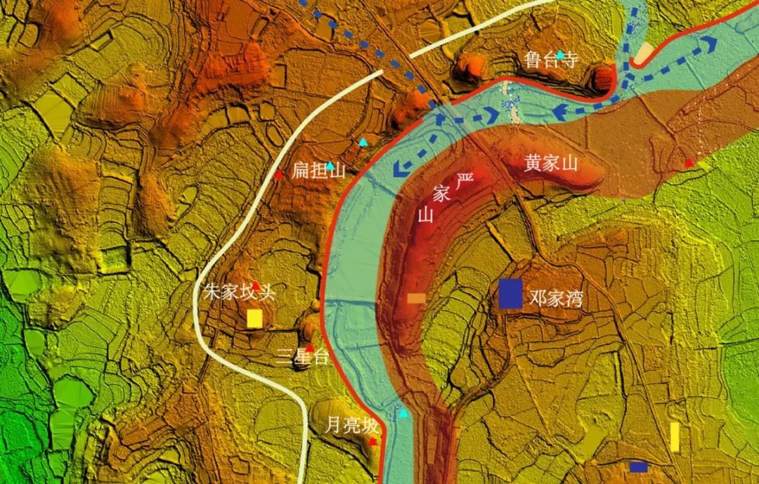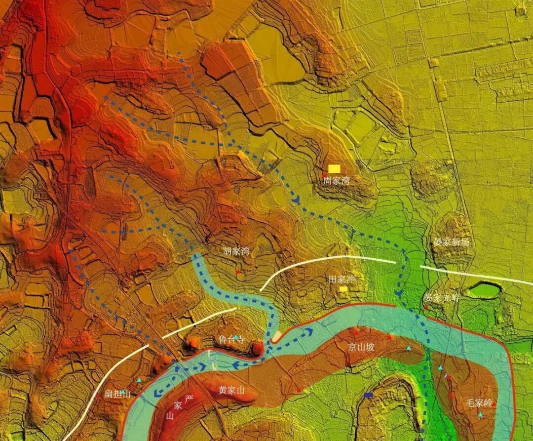 石家河古城北城墙以及水系分布图