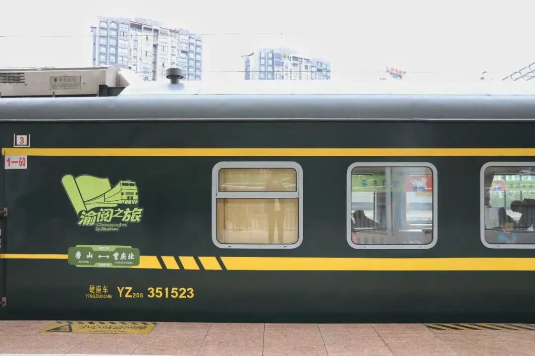 列车的车身上,涂装“渝阅之旅”图标“YuYue”二字,既有渝怀、阅读之意又音同“愉悦”
