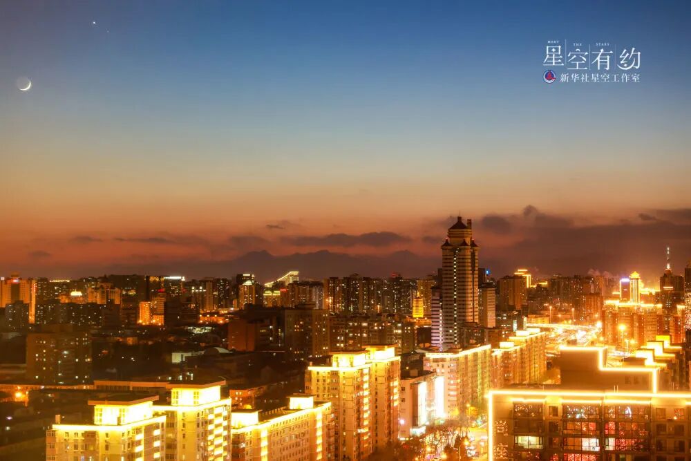 由于金星总在太阳附近出现,所以每到农历月末月初的日出日落时,经常会出现金星伴月的景观,这也是很多天文和摄影爱好者追逐的目标。2月的金星仍为“昏星”,于日落后出现在西方天空,所以月亮只能在傍晚与它“邂逅”。