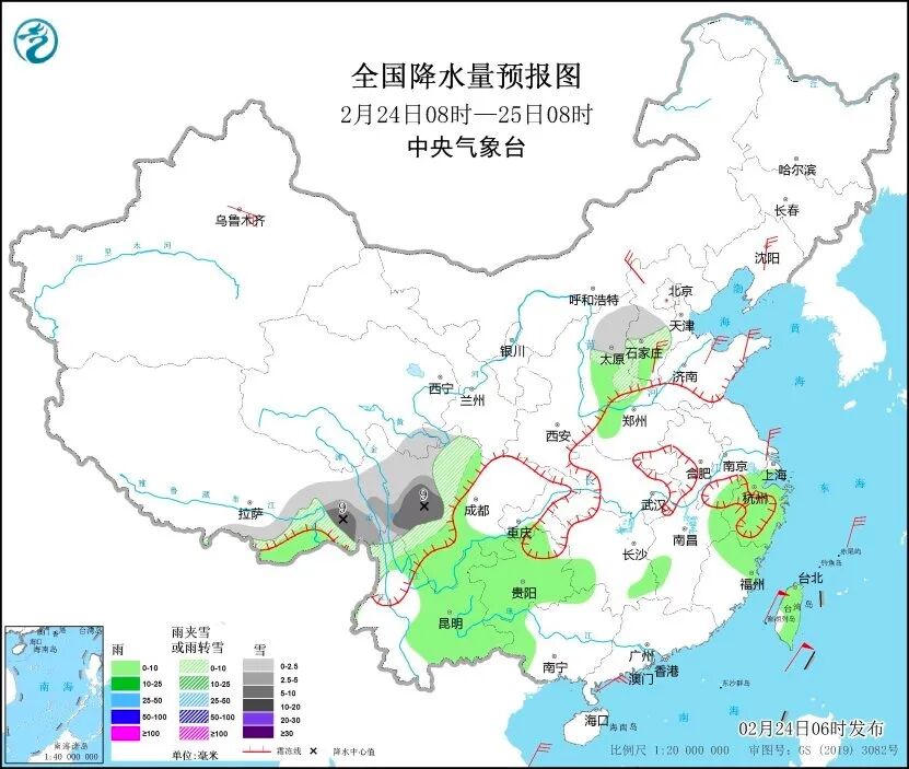 今天(24日)开始随着冷空气扩散南下我国大部分地区降水消退中央气象台预计,24日8时至25日8时西藏东部和南部、青海东南部川西高原、山西中北部、河北西南部等地部分地区有小到中雪或雨夹雪其中,西藏东南部、川西高原等地部分地区有大雪西藏东南部、山西东南部、河北西南部等地部分地区有小雨
