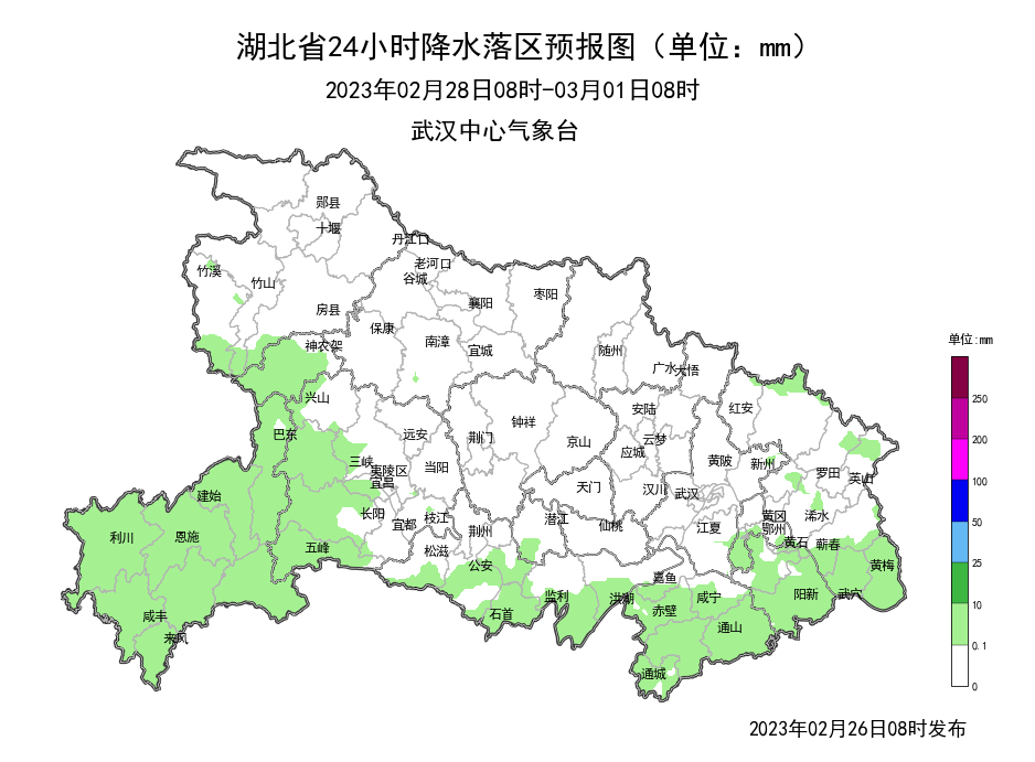 鄂西南阴天有小雨;其他地区阴天到多云,其中江汉平原南部、鄂东南局部有零星小雨。