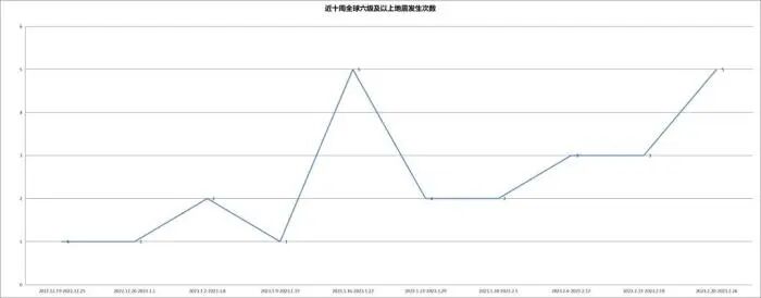 近十周全球六级及以上地震发生次数 图片来源:中国地震台网微信公众号