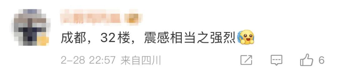 四川成都、眉山、雅安、绵阳等多地网友表示有震感