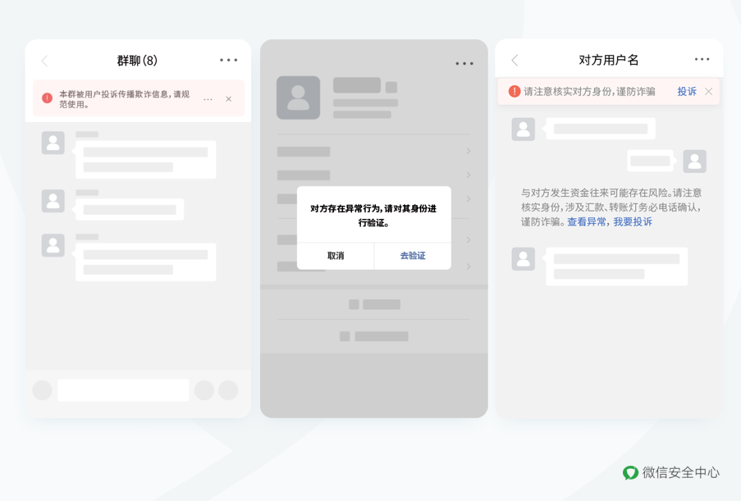 这些诈骗行为严重影响微信用户的合法权益,破坏平台的生态环境。一直以来,微信持续对平台内发生的各类欺诈行为进行重点关注、坚决处理、严厉打击。