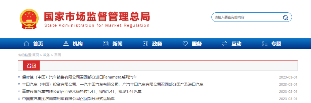 车辆召回信息