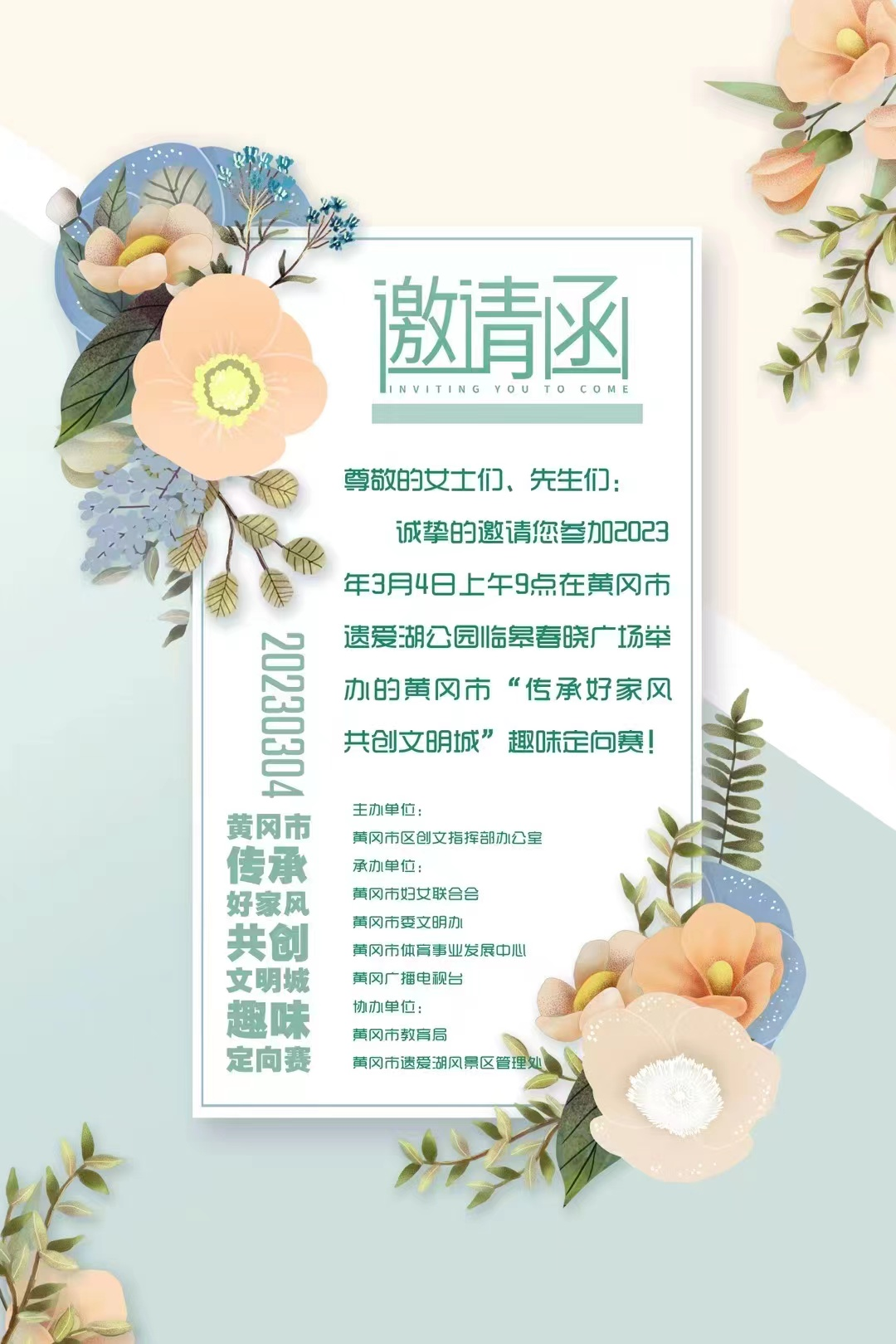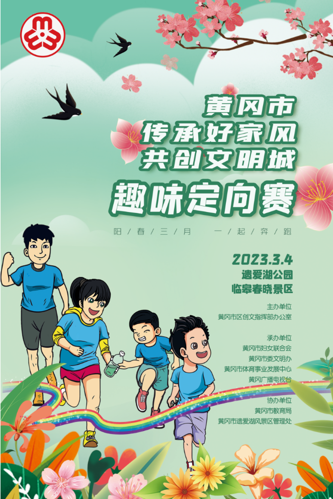 为迎接第113个“三八”国际妇女节,深化优良家风建设,助力全国文明城市创建,推动形成爱国爱家、相亲相爱、向上向善、共建共享的社会主义家庭文明新风尚,由黄冈市妇联联合黄冈市区创文指挥部办公室、黄冈市委文明办、黄冈市教育局、黄冈市体育事业发展中心、黄冈广播电视台共同举办的黄冈市“传承好家风 共创文明城”趣味定向赛将于3月4日上午在遗爱湖临皋春晓景区举行启动仪式并正式开赛。据悉,这也是我市首次举办此类赛事。