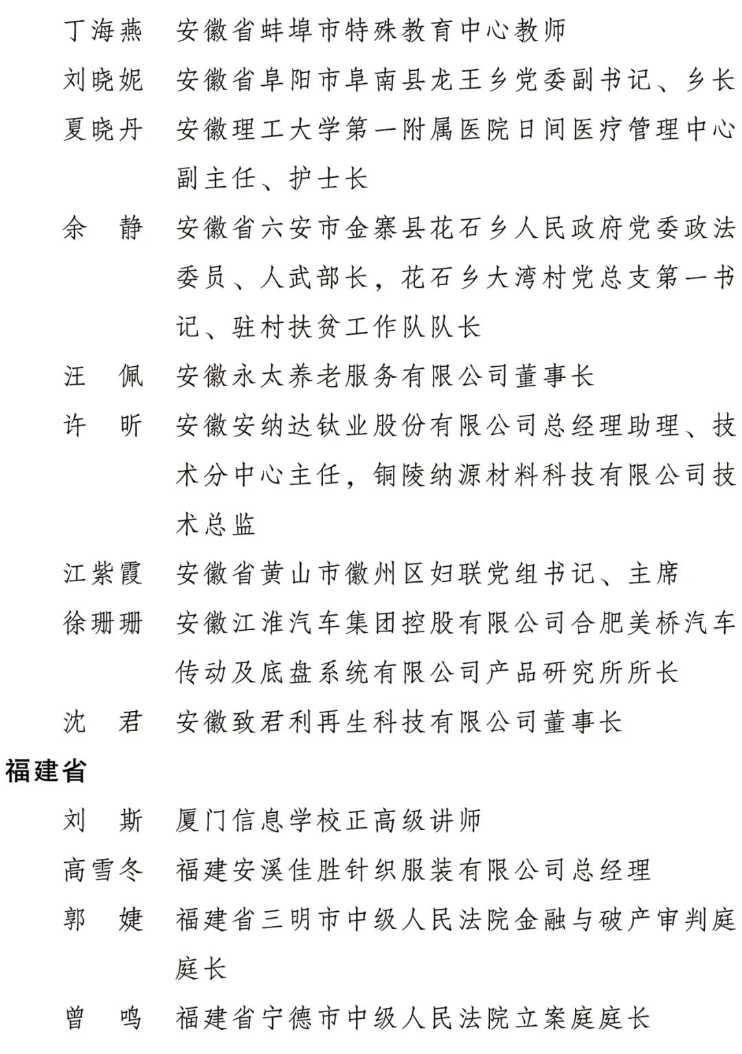 为表彰先进、树立榜样,进一步引领和激励广大妇女坚定不移听党话、跟党奋进新征程,豪情满怀、意气风发投入推进中国式现代化的伟大实践,日前,全国妇联决定,授予钱素云等10人全国三八红旗手标兵称号,授予蔡凤辉等298人全国三八红旗手称号,授予北京高校思想政治理论课高精尖创新中心等199个单位全国三八红旗集体称号。