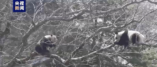 近日,四川青川大熊猫国家公园唐家河片区工作人员日常巡护时,拍摄到两只成年体大熊猫。当地已连续8年在该区域拍摄到野生大熊猫。