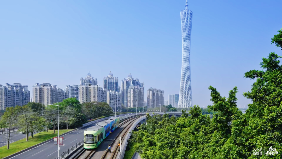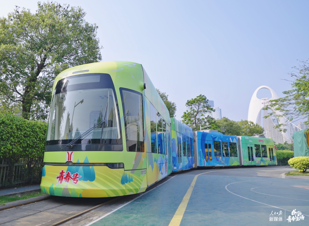 “青春号”列车穿过车水马龙的繁华闹市驶过春意盎然的珠江江畔满载热情与美好