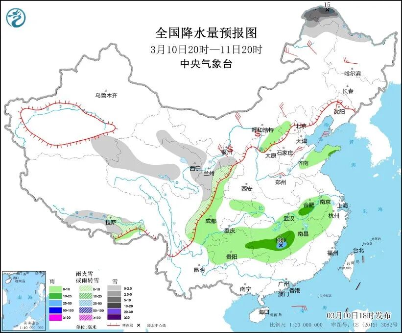 中央气象台预计,10日20时至11日20时,内蒙古东北部、黑龙江西北部、西藏南部、青海北部和中部、甘肃中南部和河西、川西高原北部等地部分地区有小到中雪或雨夹雪,其中,黑龙江西北部等地部分地区有大到暴雪。四川盆地西部和南部、贵州大部、重庆北部和南部、湖南大部、江西中北部、安徽南部等地部分地区有小到中雨,其中,湖南中部等地部分地区有大雨。