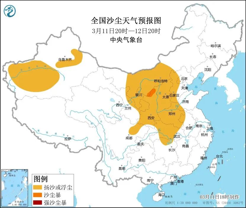中央气象台11日18时继续发布沙尘暴蓝色预警,受冷空气大风影响,预计11日20时至12日20时,内蒙古中西部、新疆南部、甘肃东部、宁夏、陕西、山西、北京西部、河北西部、河南、湖北中部、湖南北部和四川盆地北部等地的部分地区有扬沙或浮尘天气,局地有沙尘暴。