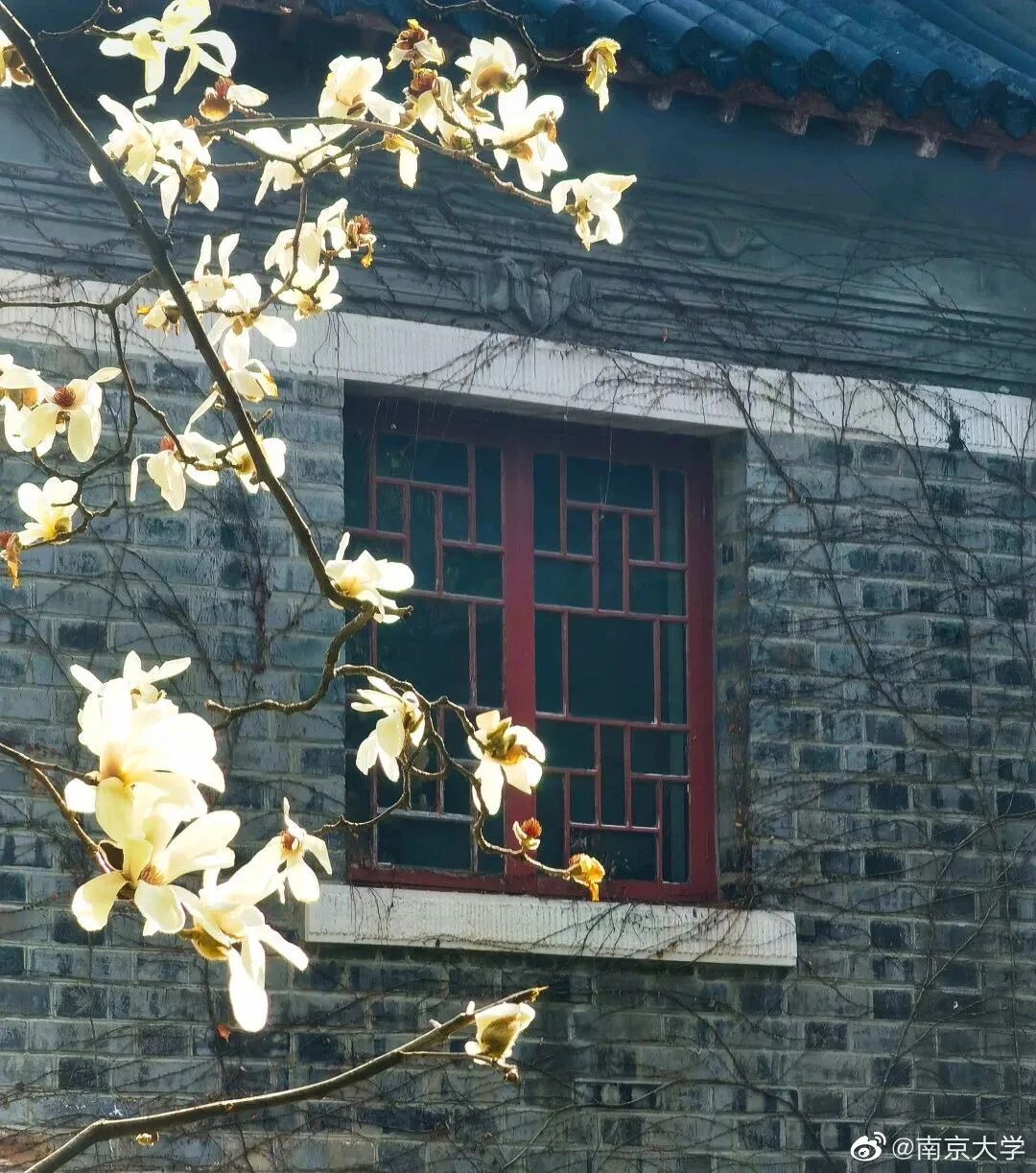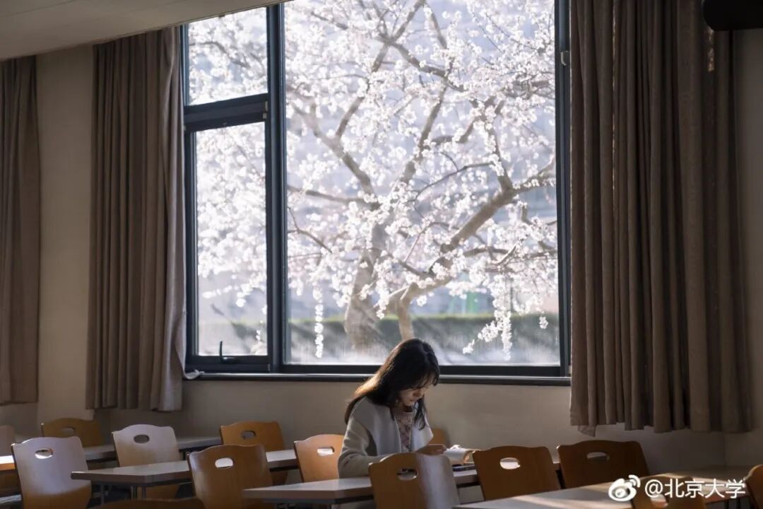在北大的教室里研读窗外是盛开的花朵在校园里漫步芳菲尽绽满枝头