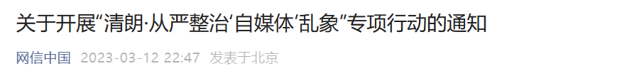 按照2023年“清朗”系列专项行动计划,中央网信办自即日起,开展为期两个月的“清朗·从严整治‘自媒体’乱象”专项行动。