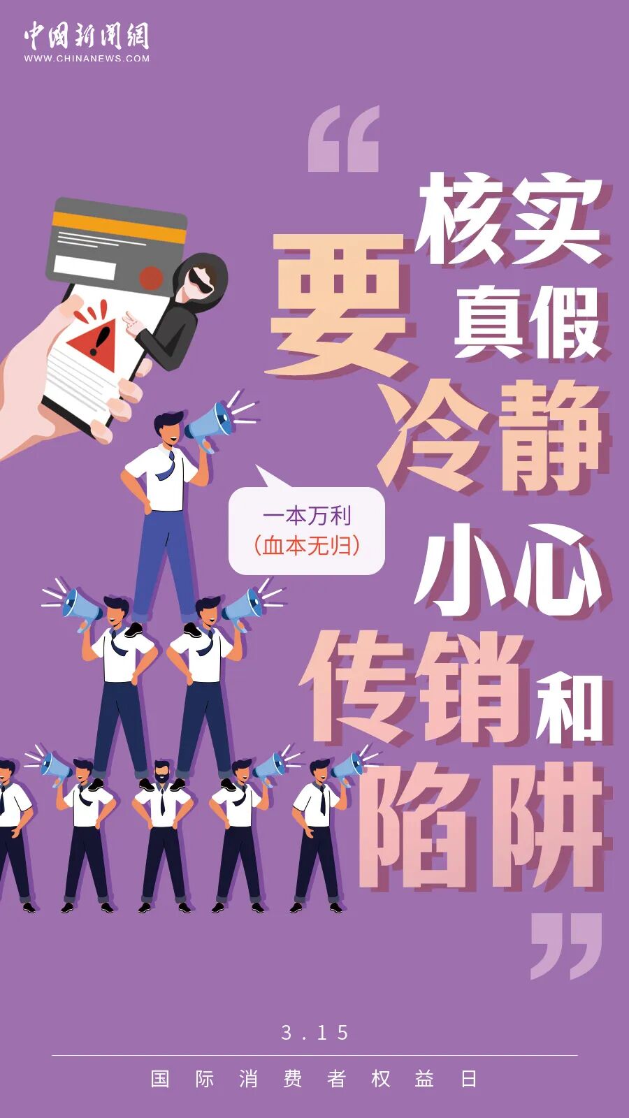 个人信息被泄露、商品销售套路深、链接真假难分辨、传销刷单咋核验……在日常生活中,你是否也曾遭遇消费侵权?我们又该如何小心消费陷阱,维护自身权益?收下这份消费者权益顺口溜,守护合法权益↓↓↓ 来源:中国新闻网