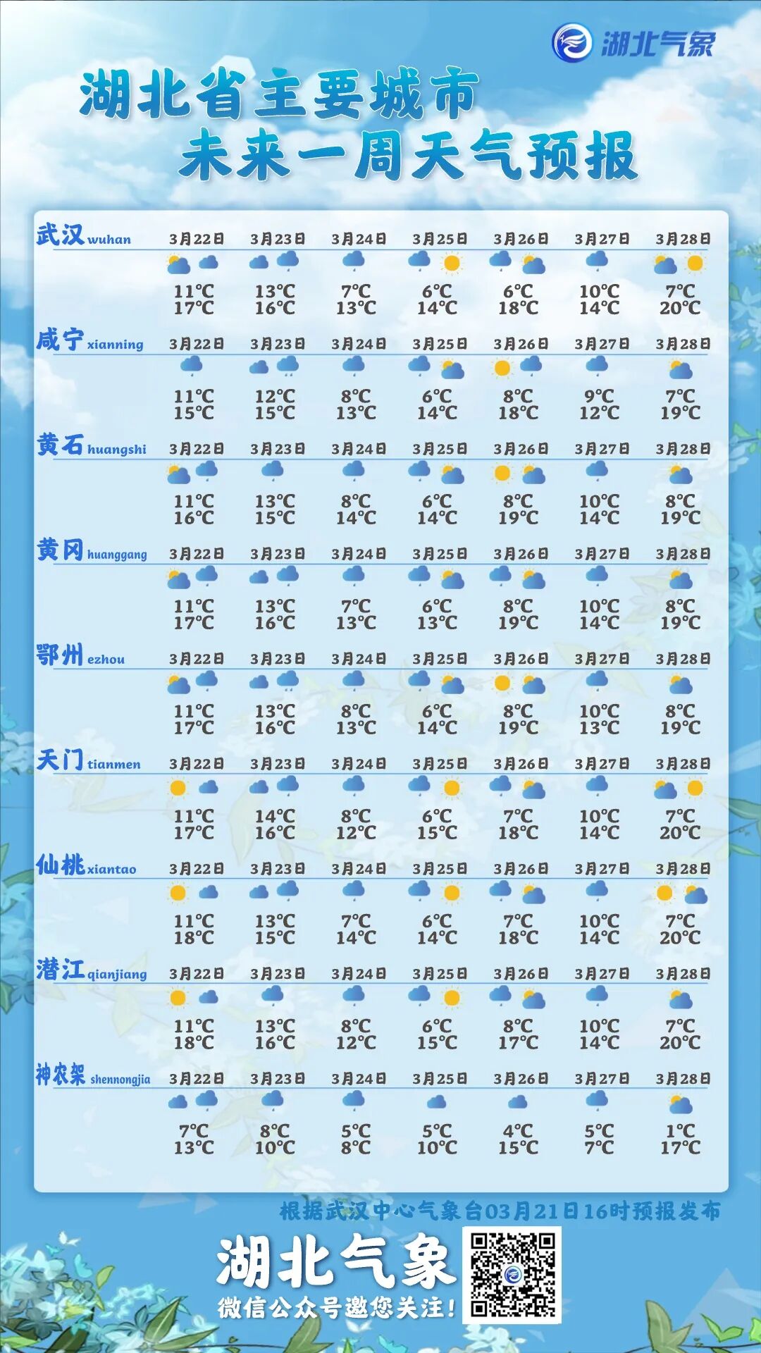 另据湖北省气象局消息,预计未来三天,受高空波动和中低层切变线影响,我省降水持续。其中,明天(22日)全省小雨,后天雨势加大至小到中雨。
