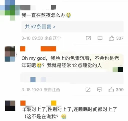 据报道,济南一名25岁女性因长期熬夜,面部长出老年斑。网友对此表示:很担心经常熬夜的自己!