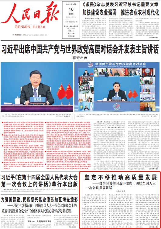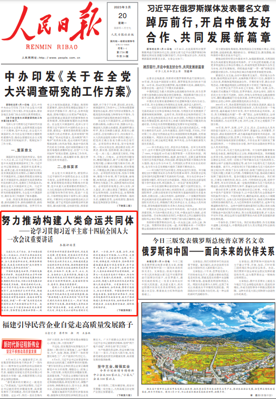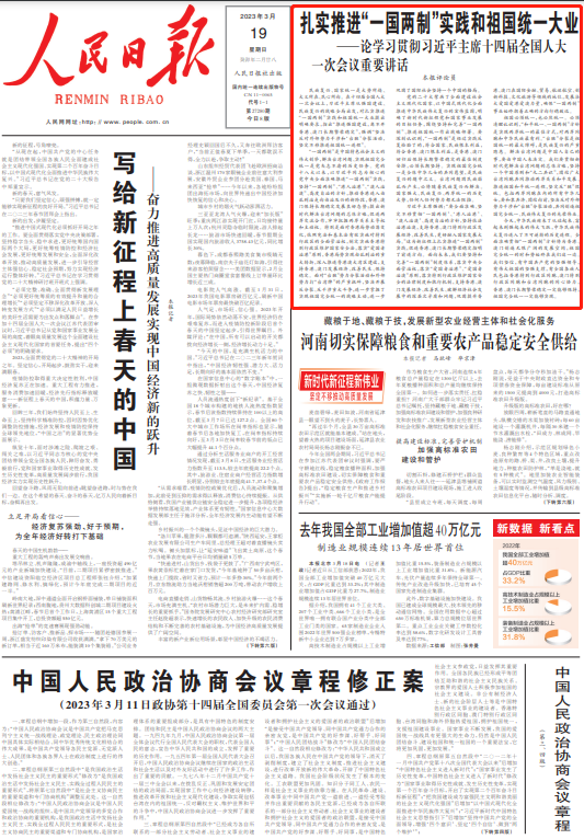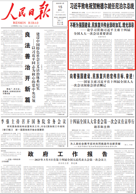 3月13日,第十四届全国人民代表大会第一次会议在北京人民大会堂闭幕。中共中央总书记、国家主席、中央军委主席习近平在会上发表重要讲话。《人民日报》刊发七篇评论员文章,深入解读阐释重要讲话精神。