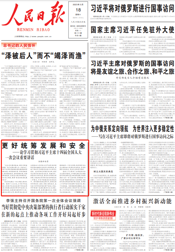 “安全是发展的基础,稳定是强盛的前提。”在十四届全国人大一次会议上,习近平主席科学把握我国发展面临新的战略机遇、新的战略任务、新的战略阶段、新的战略要求、新的战略环境,对推进强国建设、民族复兴提出明确要求、作出重大部署,强调“要更好统筹发展和安全”。