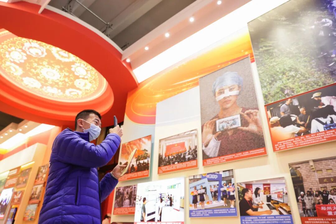 观众在“奋进新时代”主题成就展第五单元“坚定文化自信 建设社会主义文化强国”展厅内参观(2022年10月10日摄)。新华社记者 张玉薇 摄
