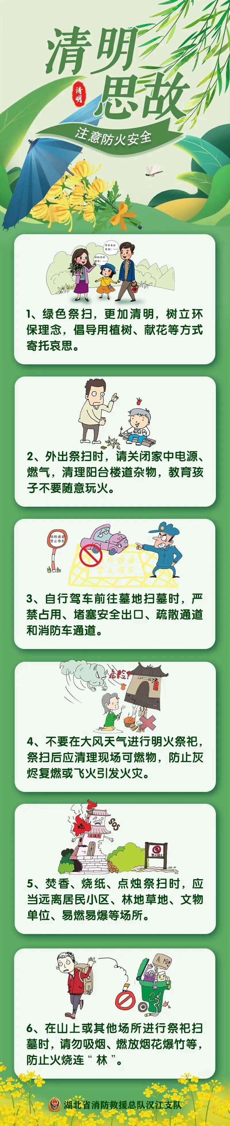 ●交通管制:清明节祭扫期间,全市将对马鞍山公墓和飞云陵园周边路段实行交通管制,做好现场的交通疏导、人员疏散、治安维护等工作。增加通往重点祭扫场所的车辆和班次,延长运营时间,或采取开设清明祭扫专线等方式,满足市民祭扫出行需求。