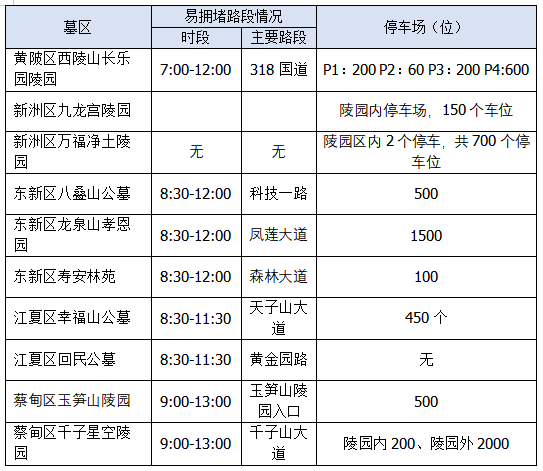 ●交通管制:在车流集中交通拥堵现象、归元陵园收费处因车流交织可能出现交通秩序混乱的情况。
