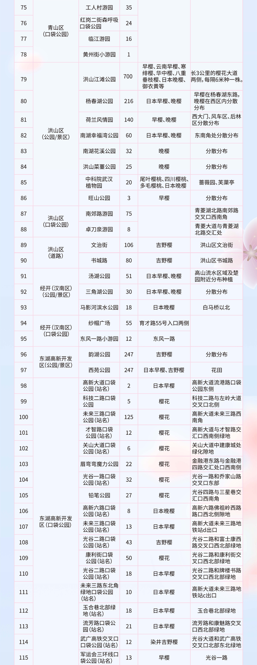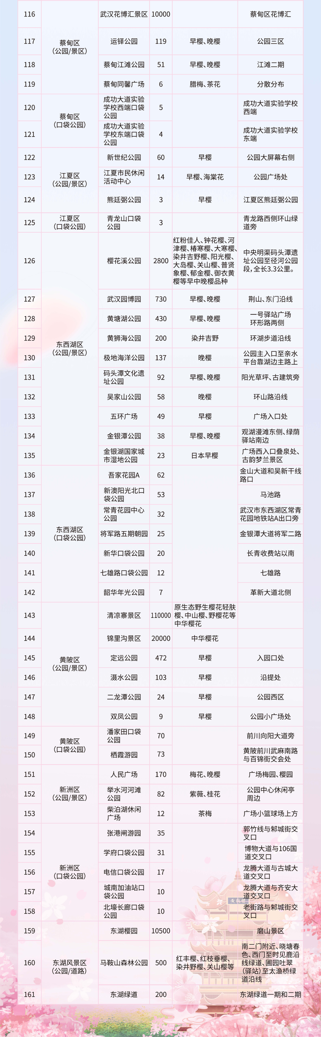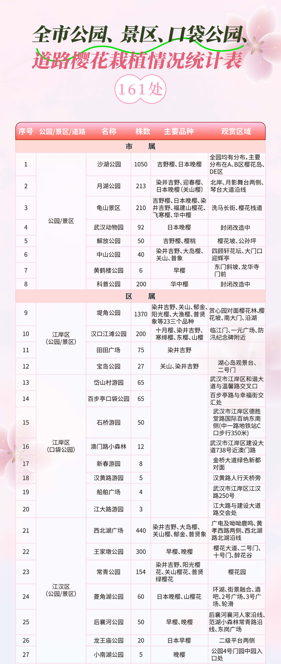 武汉市共有赏樱点161个