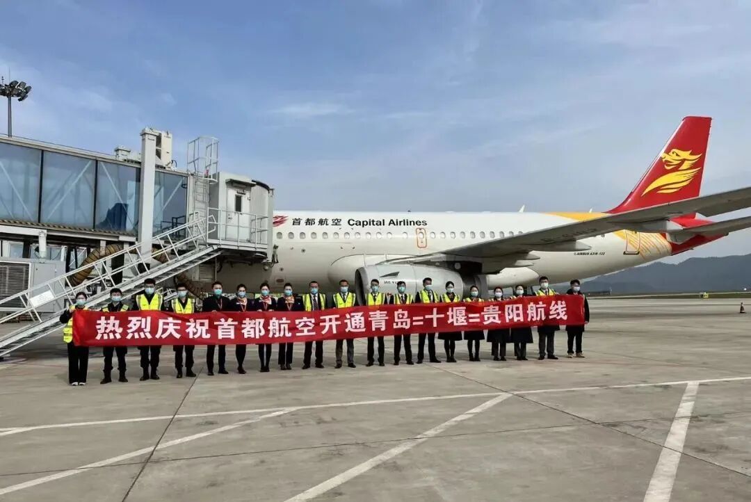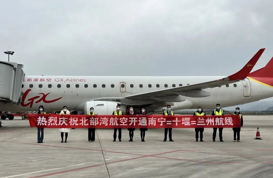 昨天上午青岛=十堰=贵阳南宁=十堰=兰州两条航线,正式开通