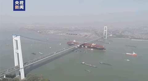 我国自主研制的全球最大装箱量集装箱船“鑫福104”轮在江苏泰兴扬子鑫福船厂离泊,安全拖带出江。