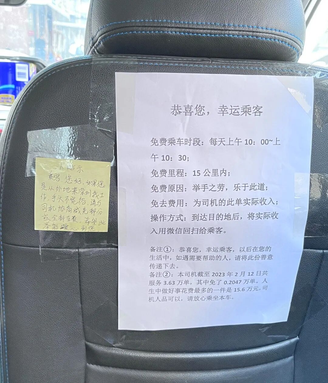 上车后一眼被座位背后贴的纸吸引,记录一下美好瞬间。祝司机师傅发财!@黄油不油