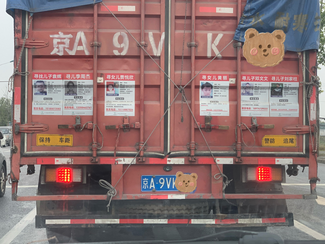 路上看到的车,车主一定是个善良的人。觉得有点感动,看到这些丢失的孩子又有些难过,希望这些父母都可以找到自己的孩子,早日团圆。