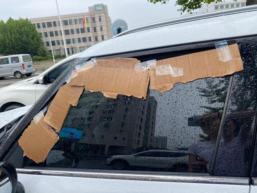 上午下雨,车窗没关严,中午开车时发现,有人用纸壳和胶带把我的车窗粘上了。好心人,谢谢你!