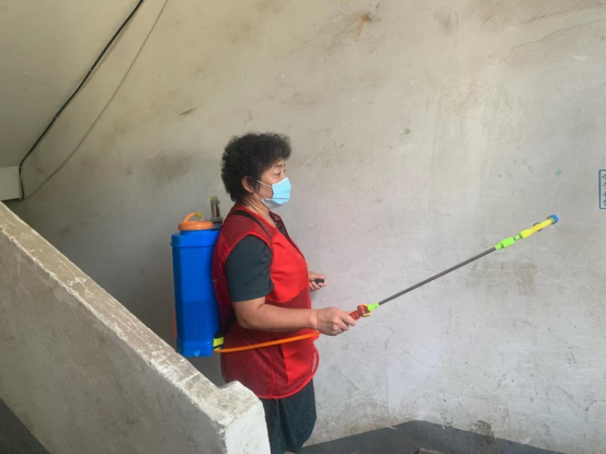 为缓解社区防疫工作量大、人员力量不足的境况,她主动请缨,带领楼栋长、下沉党员及志愿者或在核酸采样点维持现场秩序,或在卡口值守,或奔走在楼宇间为居民运送蔬菜、或为病患寻医购药、或为特殊人群提供爱心服务、或背着沉重的消毒设备进行全面消杀……。