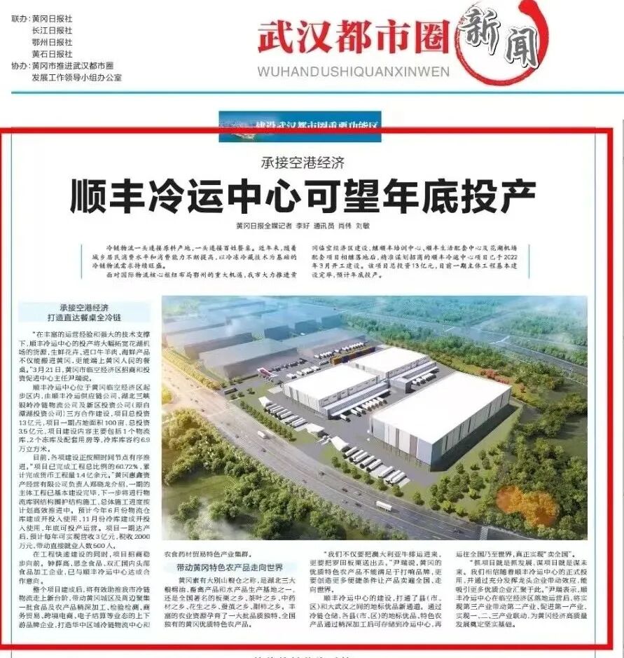 黄冈农产品卖全国、卖全球!顺丰冷运中心预计年底投产