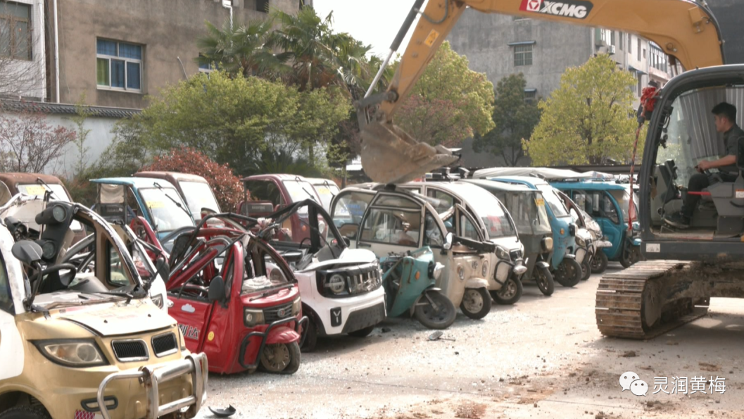 黄梅40辆非法电动三(四)轮车被集中销毁!今年以来,黄梅县多次组织开展电动三(四)轮车专项整治行动,减少安全隐患,优化交通环境。