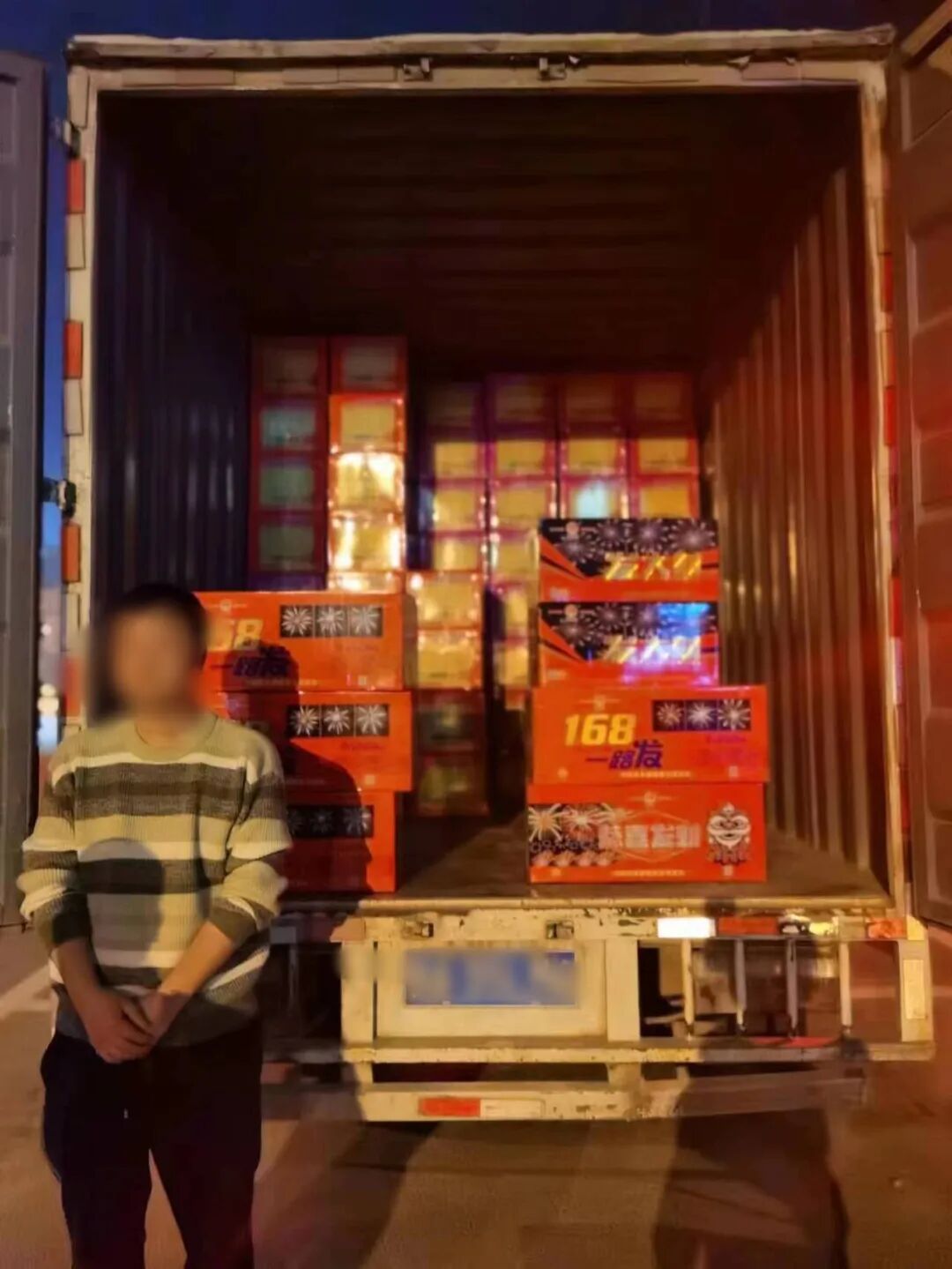 今年2月底,红安县公安局觅儿寺派出所在与治安大队开展社会面的联合安全检查中,发现觅儿寺镇一号路某超市门口的货车上有大量烟花爆竹,存在安全隐患,随即上前进行详细的检查。