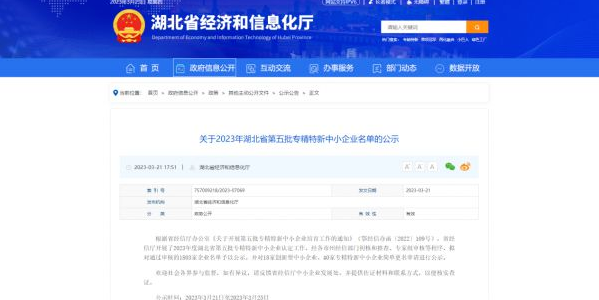 省经信厅开展了2023年度湖北省第五批专精特新中小企业认定工作,拟对通过审核的1803家企业名单予以公示,黄州区16家企业进入公示名单。