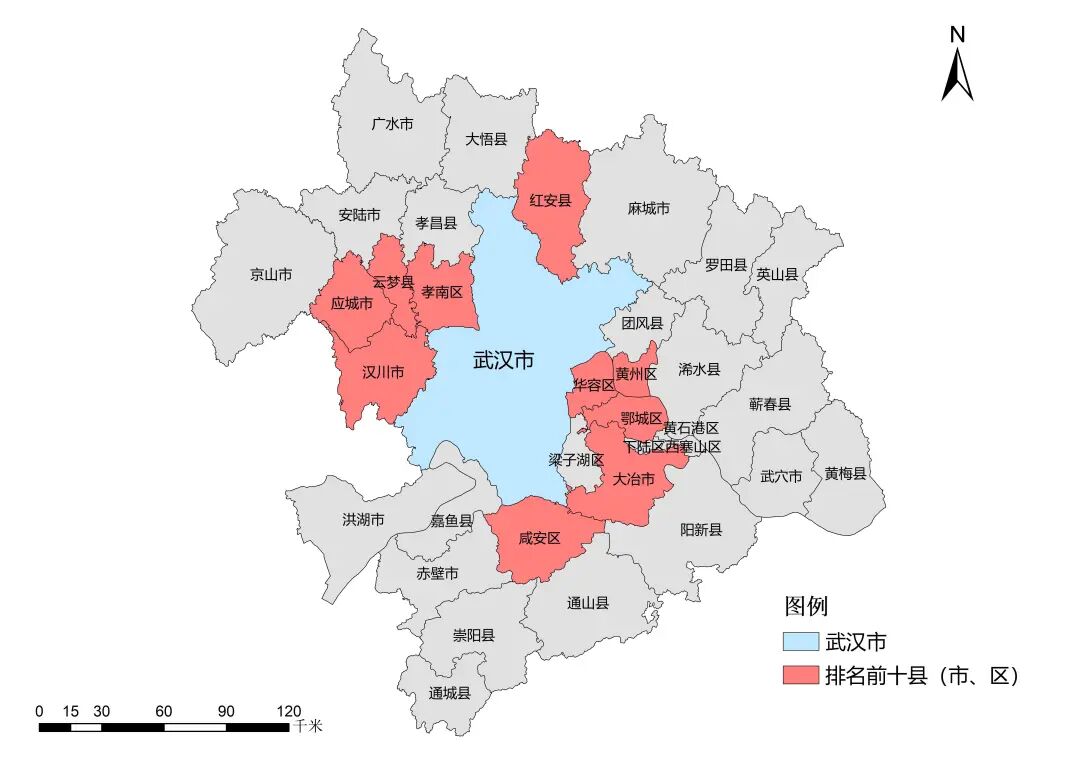 一同发布的,还有2022年武汉都市圈县(市、区)融入武汉发展指数。八市35个县(市、区)(含广水市、洪湖市、京山市3个观察员城市)综合排名前10强县(市、区)分别是:孝南区、黄州区、汉川市、华容区、鄂城区、大冶市、应城市、云梦县、咸安区、红安县。其中,孝感市占据4位,孝南区排行居首,鄂州市、黄冈市各占据2位,黄石市和咸宁市各占据1位。