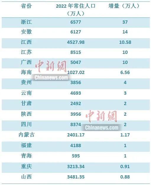 在此背景下,2022年,全国仍有超过一半的省份常住人口正增长。