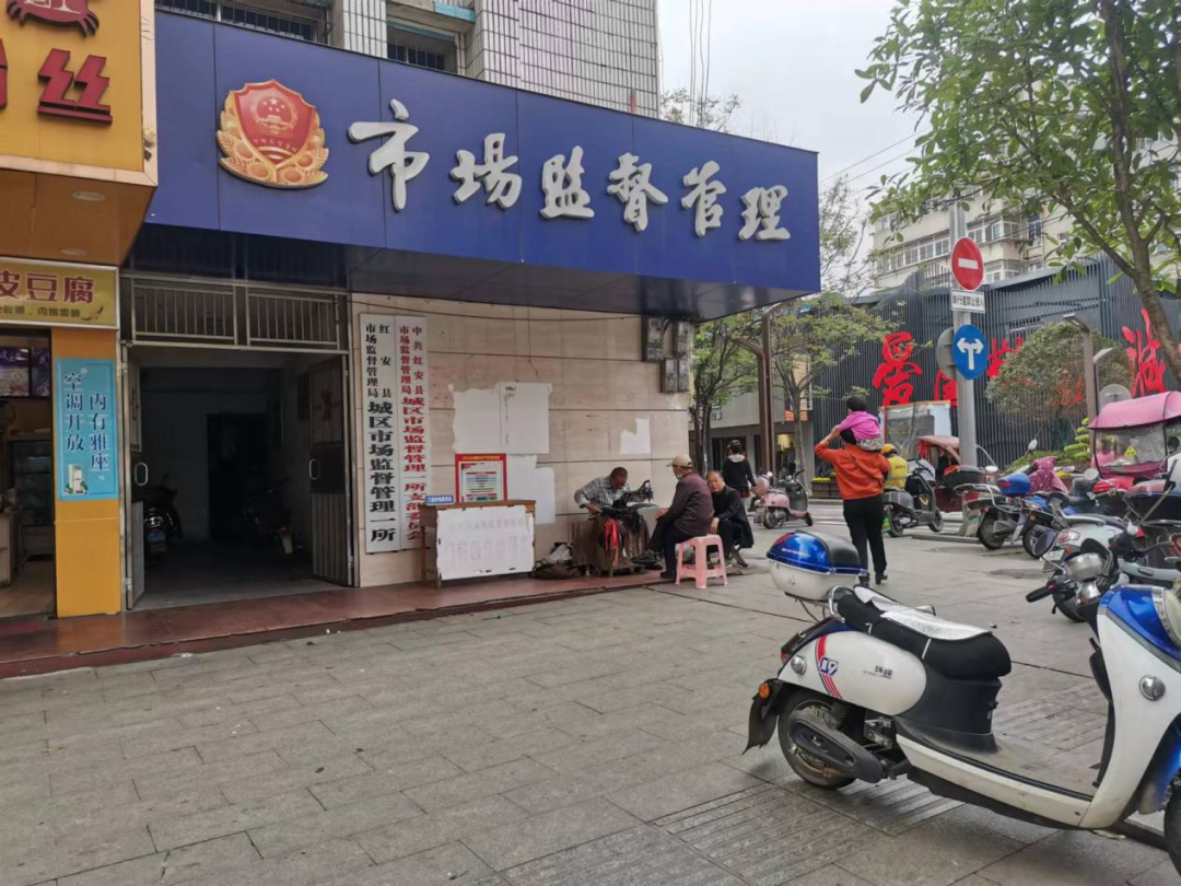 有岗无人,市场监督管理一所门前存在占道经营修理