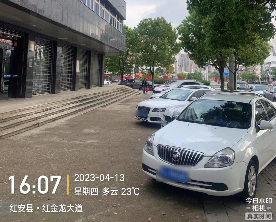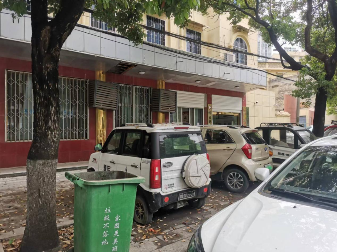 无人无岗,门前车辆无序停放