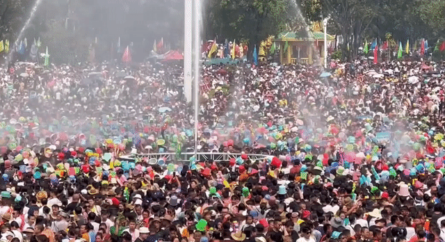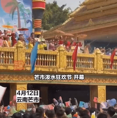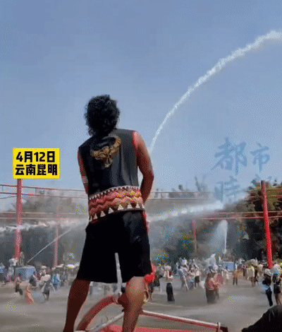 但你看到的泼水节,大部分可能是这样的,四月,云南西双版纳等地已化身热闹的“水场”,泼水主打一个疯狂,湿透衣裳,才有可能退场↓