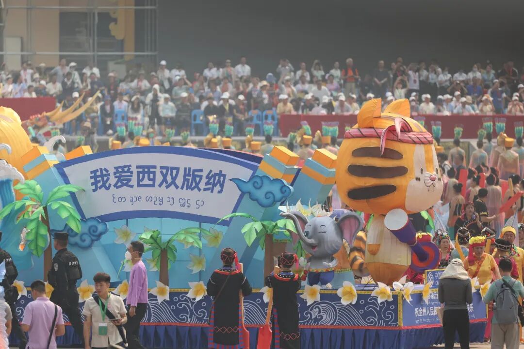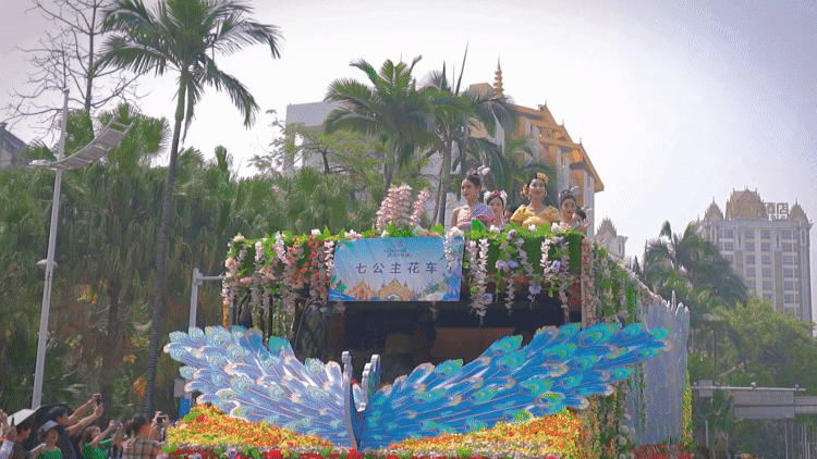 除了泼水活动,当地还有盛大的非遗巡街展演,可以观看花车巡游↓